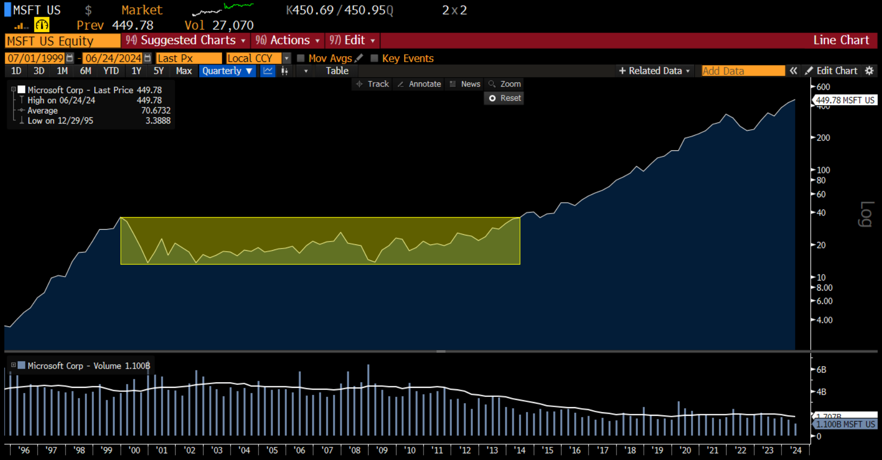 Despite the quality of the company, an investor who bought MSFT in september 1999 would have to wait 14.5 years for a new all time high, even when including dividends! Obviously, this is the kind of situation we’d like to avoid.